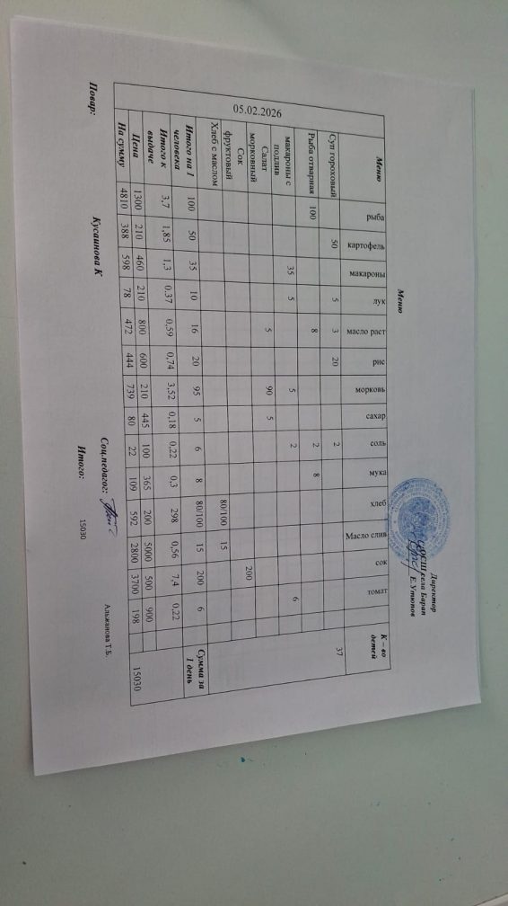Бір күндік ас мәзірі 05.02.2026 ж