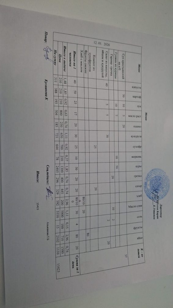 Бір күндік ас мәзірі 12.01.2026 ж
