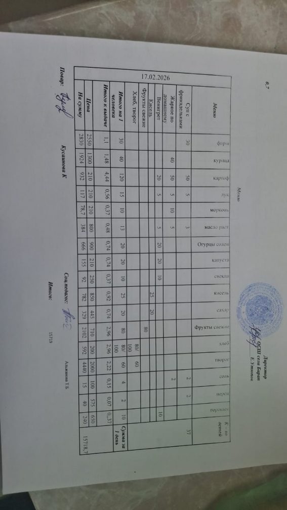 Бір күндік ас мәзірі 17.02.2026 ж