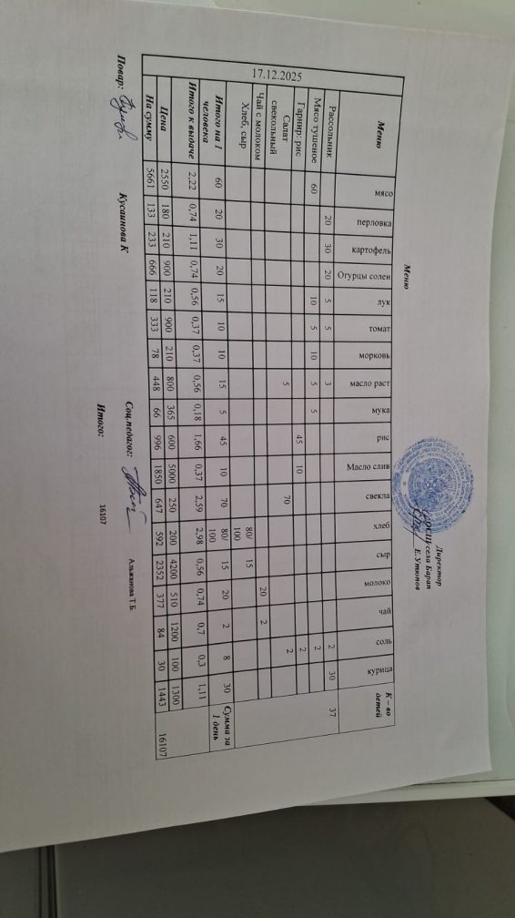 Бір күндік ас мәзірі 17.12.2025 ж